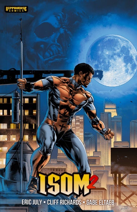 Isom issue 2 from Rippaverse features some cool names. Eric D. July returns as the writer with Cliff Richards handling the artwork, Gabe Eltaeb returns to tackle the coloring, and Eric Weathers does the lettering.